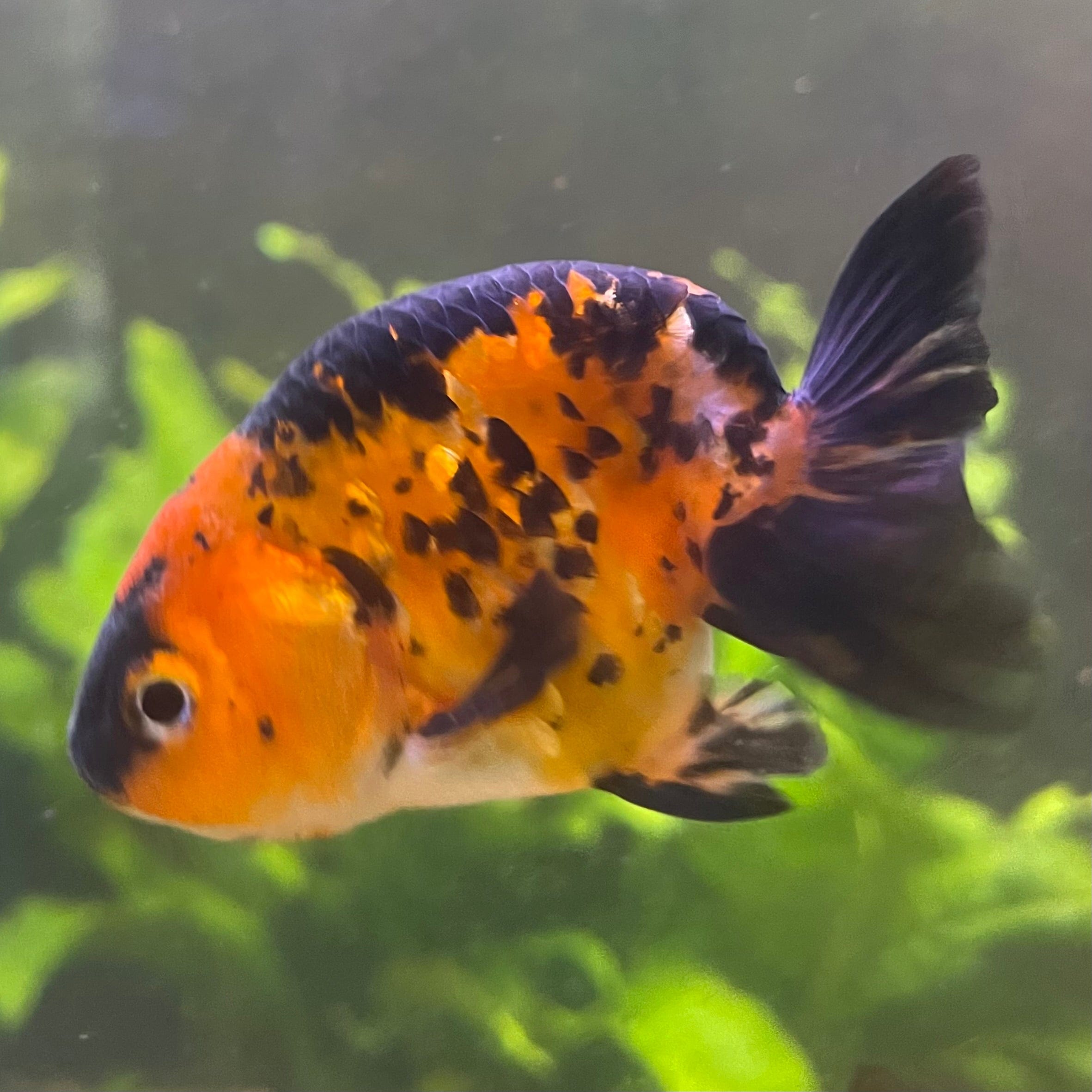 Like other Ranchu Goldfish, the Calico variety is commonly referred to as the “King of Goldfish” and has a distinctive hood (otherwise known as a wen or crown), the bulbous growth on the top of their head. Calico Ranchu Goldfish make an excellent addition to your aquarium or garden pond.