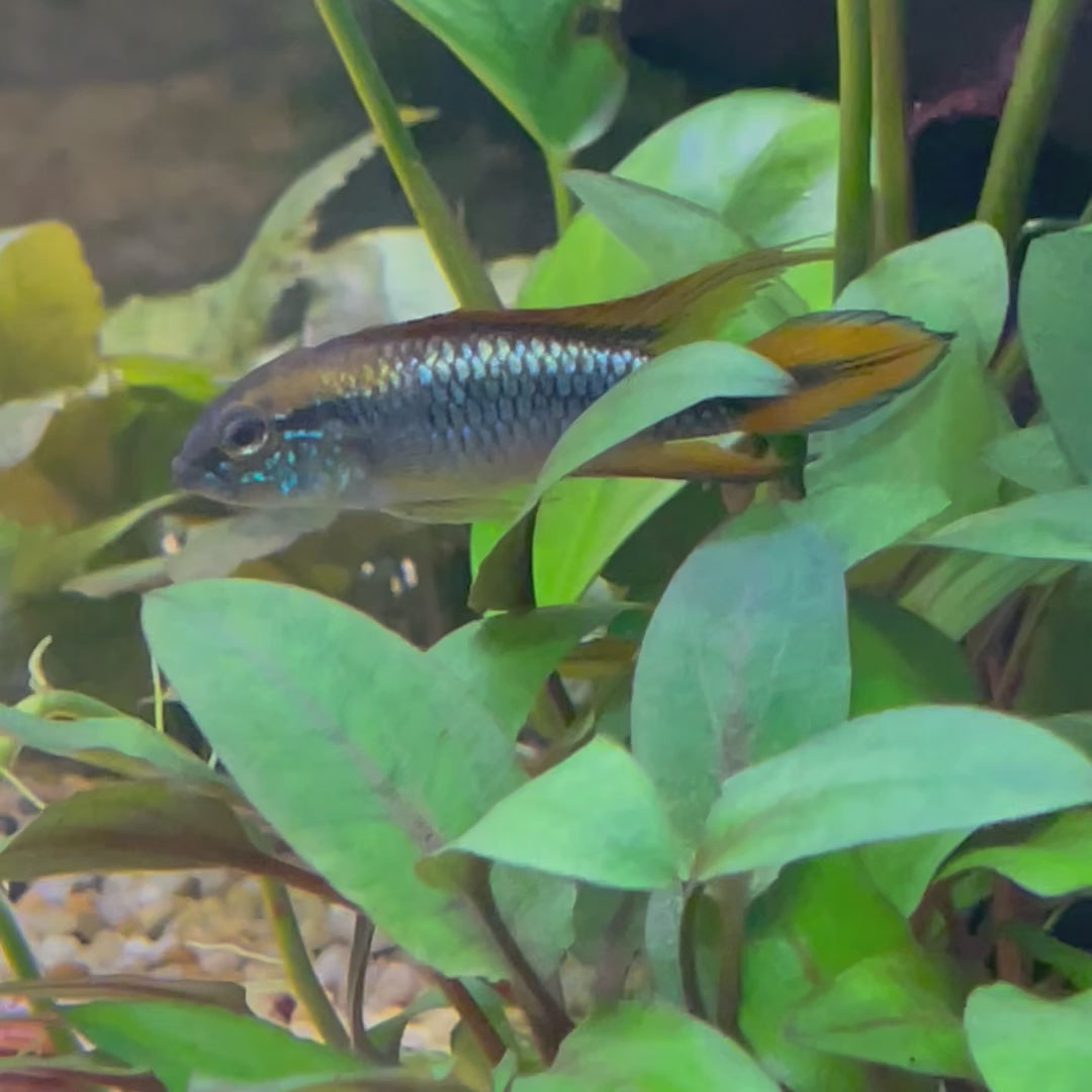 These are a native South American dwarf cichlid, popular amongst hobbyists for their variety of shapes and colours. They prefer soft, acidic water in planted tanks. Can be kept in community tanks.