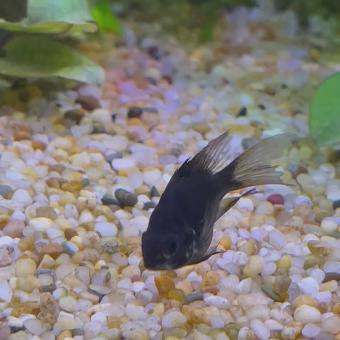 These are a native South American dwarf cichlid, popular amongst hobbyists for their variety of shapes and colours. They prefer soft, acidic water in planted tanks. Can be kept in community tanks.
