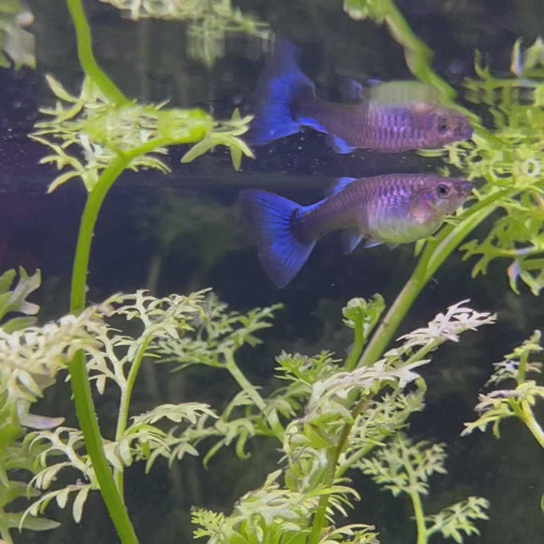 Guppies are wonderful aquarium fish. They are peaceful, beautiful fish that come in many colours and patterns. They are great in a community tank or featured in a large school. Guppies are live-bearers that give birth to fry and they benefit from a well-planted tank to provide hiding places for the baby fish to hide. They enjoy regular water changes and clean gravel substrate.