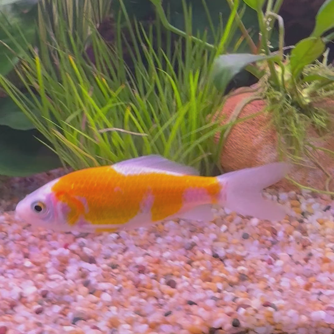Comet Goldfish have a distinctive scissor-shaped singular forked tail with two tips, usually the same length as their entire body, and come in an assortment of colours. Common variants range from yellows through to oranges and reds, sometimes with white elements. These brilliant colours and showy tails make Comets an attractive, impressive showpiece for your aquarium.