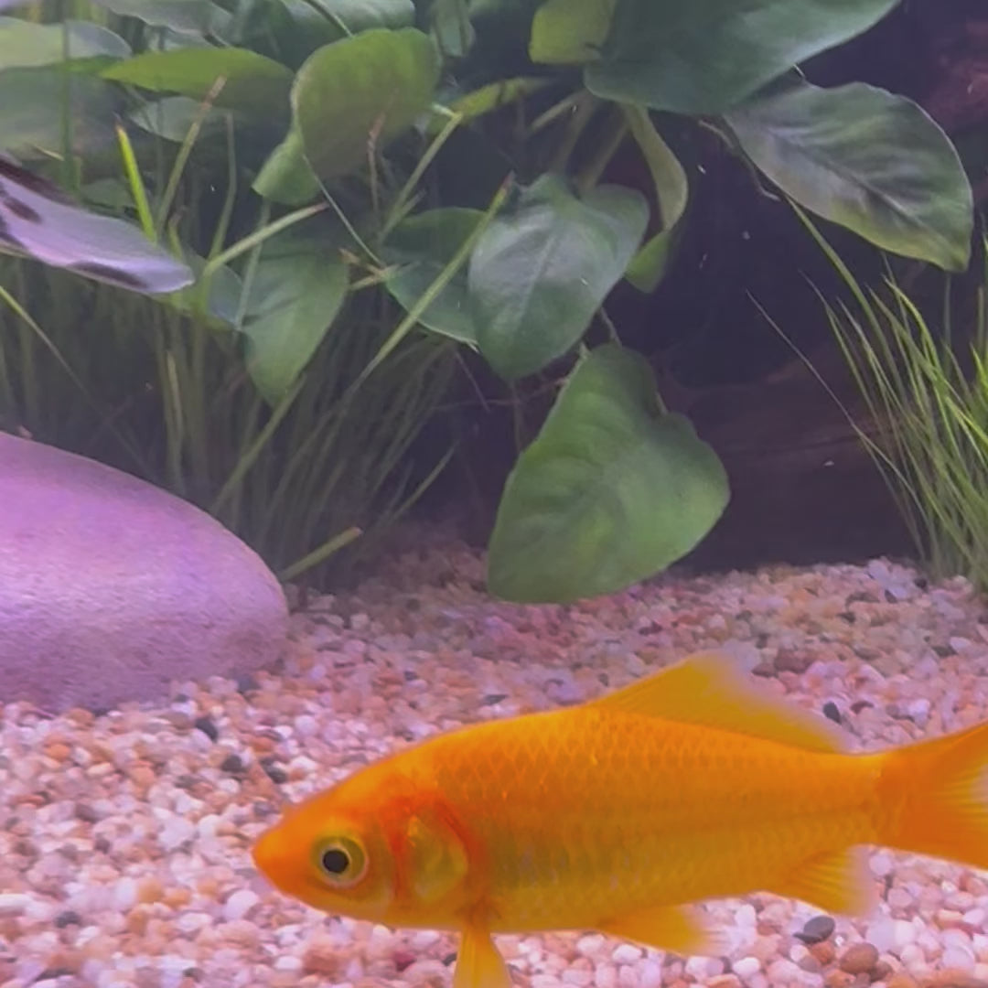 Golden Comet Goldfish have a distinctive scissor-shaped singular forked tail with two tips, usually the same length as their entire body, with a lighter shade of gold scales than other variants of Comets. Their brilliant golden shimmer and showy tails make Golden Comets an attractive, impressive showpiece for your aquarium.