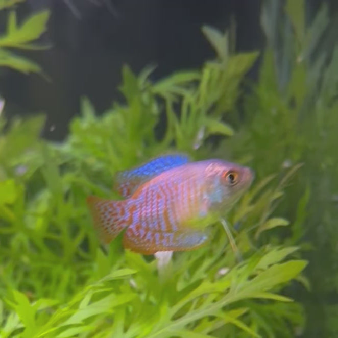 Gouramis are an excellent addition to community tanks and will not predate on other fish. They are omnivorous and eager eaters. Males can become aggressive toward other colourful fish of the same size which it mistakes for other males and tank mates should be chosen carefully. Gouramis are air-breathers and must have good access to the water surface.