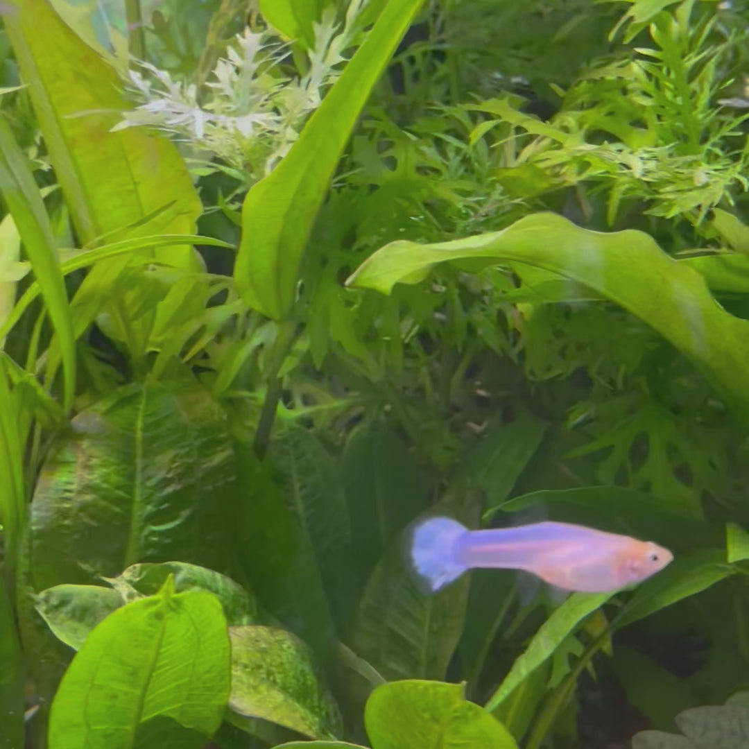 Guppies are wonderful aquarium fish. They are peaceful, beautiful fish that come in many colours and patterns. They are great in a community tank or featured in a large school. Guppies are live-bearers that give birth to fry and they benefit from a well-planted tank to provide hiding places for the baby fish to hide. They enjoy regular water changes and clean gravel substrate.